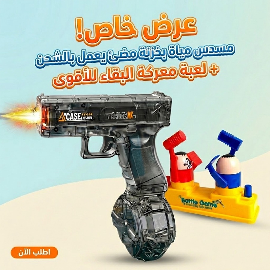 أقوى مسدس مية للأطفال والكبار… شحن كهربائي + إضاءة LED شكلها نار بالليل 🔥